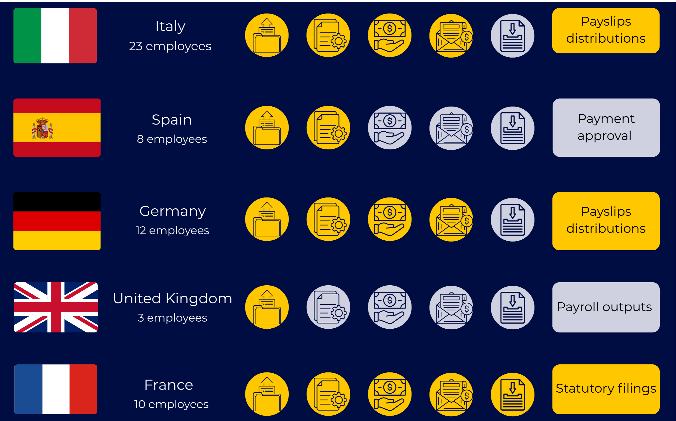 All payroll operations are brought together in a single, structured environment. Payroll data, payslips, annual employee statements, accounting reports, and HR documentation are centralized, creating consistency across countries and making reviews, audits, and reporting significantly easier.
